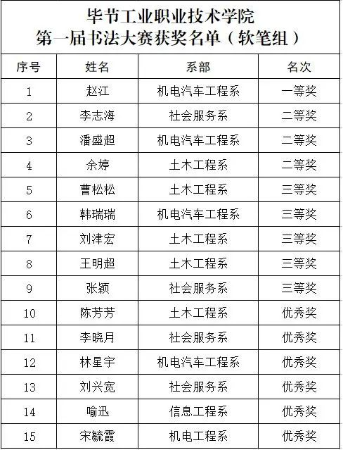學(xué)院第一屆書法大賽圓滿落幕