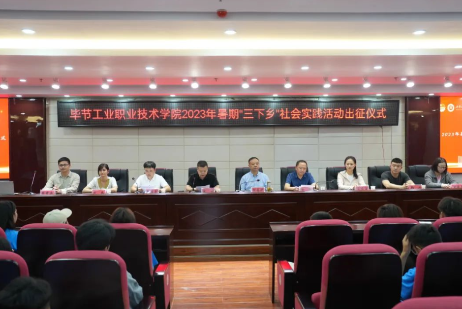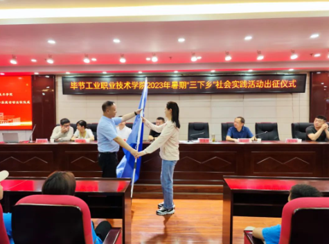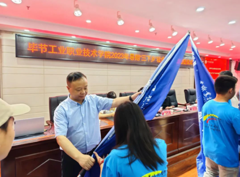 黃河宣讀了《畢節(jié)工業(yè)職業(yè)技術(shù)學(xué)院2023年暑期“三下鄉(xiāng)”社會實踐活動紀(jì)律安全守則》并做指導(dǎo)講話。