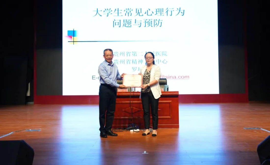 培訓(xùn)會上,羅環(huán)躍教授圍繞“大學(xué)生常見心理行為問題與預(yù)防”主題,從心理行為問題與精神疾病的區(qū)分、大學(xué)生常見心理行為問題、大學(xué)生心理問題的預(yù)防策略三個方面,對如何識別學(xué)生心理問題的正常與異常情況、學(xué)生常見心理行為問題及產(chǎn)生原因進(jìn)行分析,并就如何構(gòu)建良好家庭關(guān)系和朋輩關(guān)系,著力提升學(xué)生心理健康品質(zhì)等內(nèi)容進(jìn)行重點講解。通俗的語言,豐富的案例,理論與實踐的有效結(jié)合,現(xiàn)場學(xué)生個案問題處理的交流與互動,幫助參訓(xùn)教師了解了學(xué)生心理健康知識,提升了服務(wù)學(xué)生心理健康的水平和能力。 會后,黃文碧代表學(xué)院為羅環(huán)躍頒發(fā)了畢節(jié)工職院心理學(xué)客座教授聘書。
