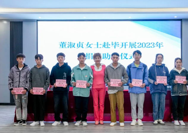 儀式上,董淑貞女士為來自畢節(jié)工業(yè)職業(yè)技術(shù)學(xué)院、赫章縣、黔西市的受助學(xué)生代表發(fā)放助學(xué)金,與同學(xué)們親切交流,結(jié)合自己的經(jīng)歷,用富有哲理的故事為同學(xué)們分享了成長過程中應(yīng)該如何面對(duì)困難和壓力,鼓勵(lì)同學(xué)們?cè)诿鎸?duì)挫折時(shí)要滿懷希望、永不放棄、積極行動(dòng)、持之以恒,并為學(xué)生的職業(yè)發(fā)展、人生規(guī)劃提出切實(shí)可行的建議。